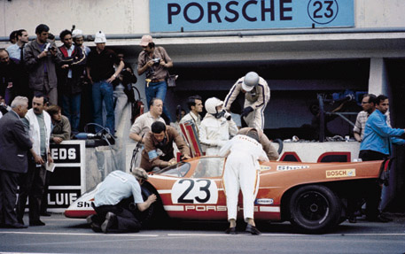 Richard Attwood takes over the #23 Salzburg Porsche 917 from Hans Herrmann late on Saturday afternoon