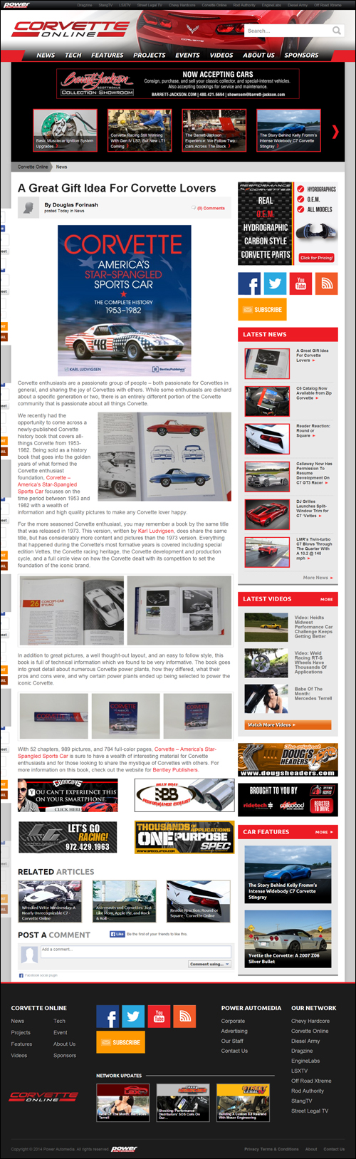 With 52 chapters, 989 pictures, and 784 full-color pages, Corvette - America's Star-Spangled Sports Car is sure to have a wealth of interesting material for Corvette enthusiasts and for those looking to share the mystique of Corvettes with others. For more information on this book, check out the website for Bentley Publishers.