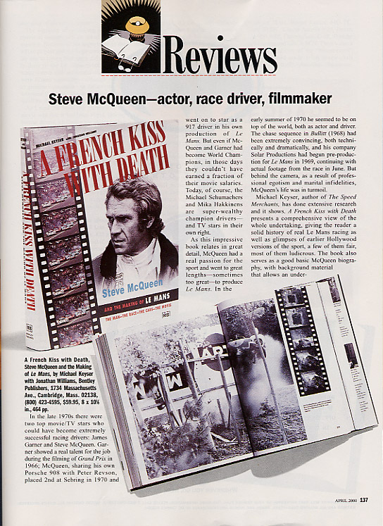 Michael Keyser, author of The Speed Merchants, has done extensive research and it shows. A French Kiss with Death presents a comprehensive view of the whole undertaking, giving the reader a solid history of real le Mans racing as well as glimpses of earlier Hollywood versions of the sport, a few of them fair, most of them ludicrous. The book also serves as a good basic McQueen biography, with background material that allows an understanding of his entire career.